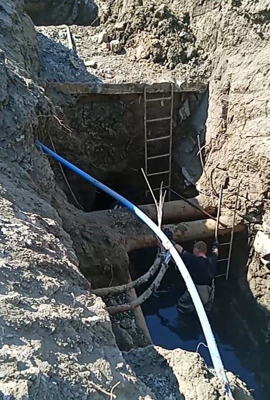 Специалисты провели земляные работы с разработкой грунта, установили канализационный колодец и железобетонные крышки, заменили более 20 метров аварийного участка сети водоотведения.