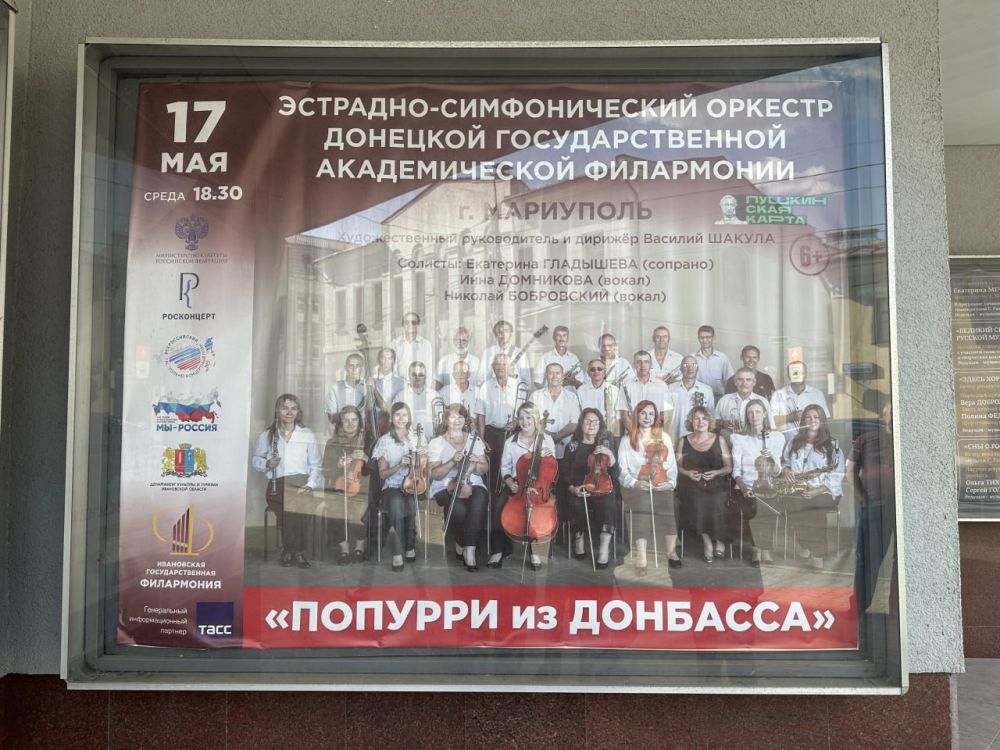 Музыканты Мариупольского эстрадно-симфонического оркестра под управлением дирижёра Василия Шакулы и артисты из Донецка - Екатерина Гладышева (вокал), Николай Бобровский (вокал), Иван Самофалов (гитара), Ростислав Горбачёв (ведущий) продолжают свой гастрольный тур.