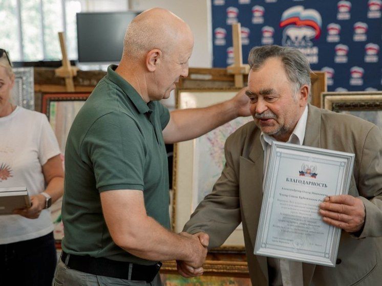 Житель Псковской области Олег Александров представил в приморском городе ДНР экспозицию, состоящую из более ста картин. Среди работ художника можно увидеть портреты Героев Великой Отечественной войны и Героев Донбасса.