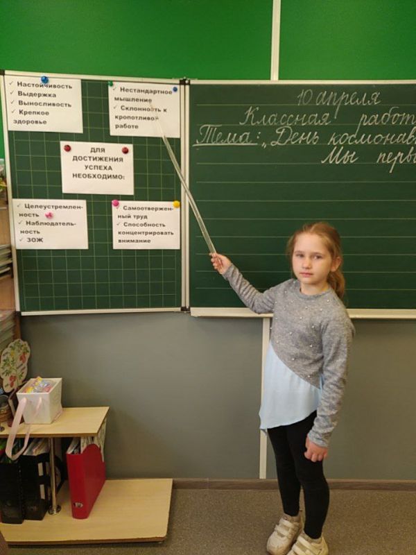 В СШ №41 в преддверии праздника был проведен тематический урок из цикла «Разговоры о главном». «В мероприятии были задействованы ученики всех классов. Ребята приняли участие в викторине, где отвечали на вопросы космической тематики. Затем школьники посмотрели видео-материалы об известных космонавтах и обсудили, какие качества им нужно развивать, чтобы достичь поставленных целей в жизни», - делится заместитель директора учебного учреждения Елена Темченко.