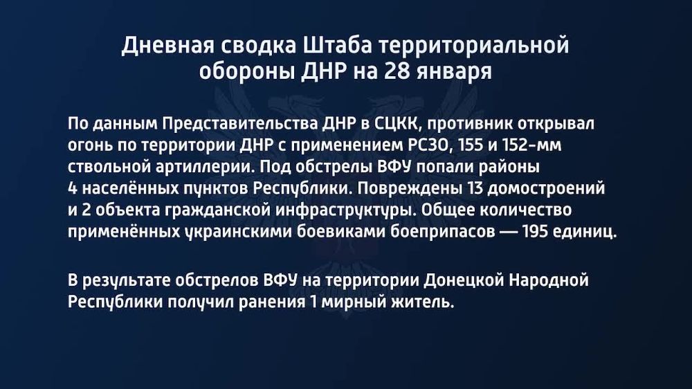 Дневная сводка Штаба территориальной обороны ДНР на 28 января 2023 года