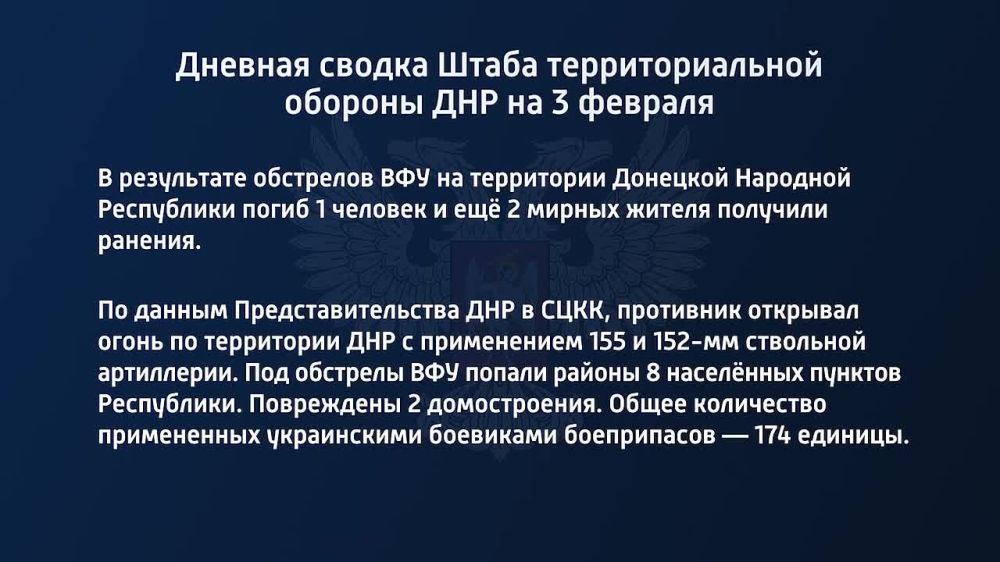 Дневная сводка Штаба территориальной обороны ДНР на 3 февраля 2023 года