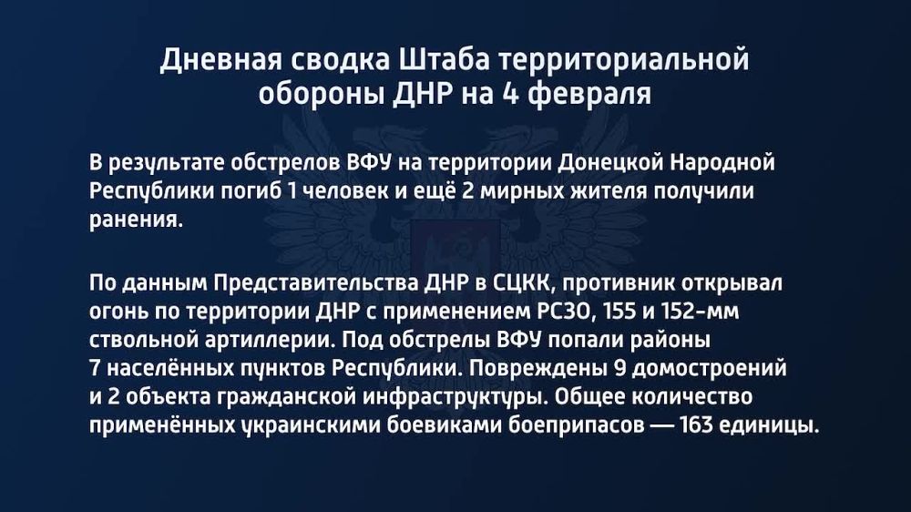 Дневная сводка Штаба территориальной обороны ДНР на 4 февраля 2023 года