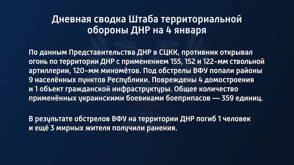 Дневная сводка Штаба территориальной обороны ДНР на 4 января 2022 года