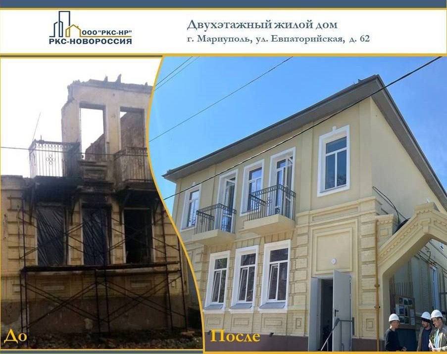 Двухэтажный жилой дом восстанавливается в Октябрьском районе Мариуполя компанией ООО «РКС-НР» с привлечением АО «Центр строительного контроля и экспертиз Ленинградской области»