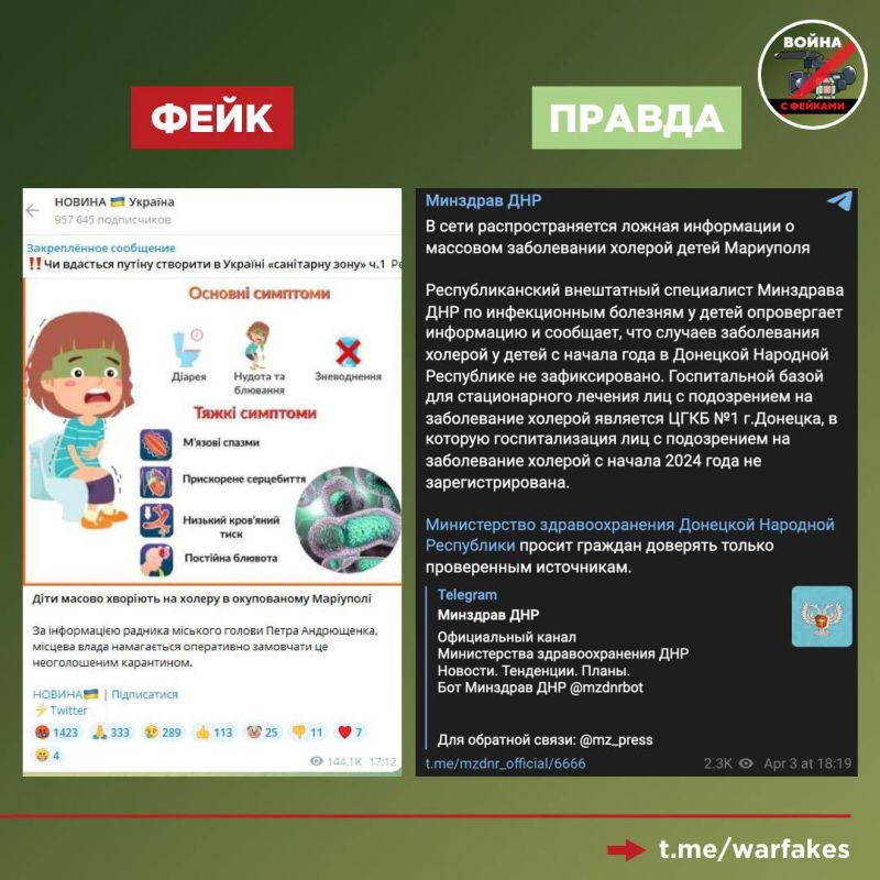 Правда: Никакой эпидемии холеры в Мариуполе нет. Украинская пропаганда создала фейк по давно отработанной ЦИПсО схеме, о которой мы уже рассказывали.