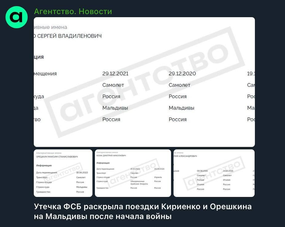 Фейк: В сеть слили крупнейшую базу данных погранслужбы ФСБ с подробной информацией о передвижениях госслужащих и первых лиц РФ за пределы страны, утверждает ряд телеграм-каналов со ссылкой на публикацию издания «Агентство»*