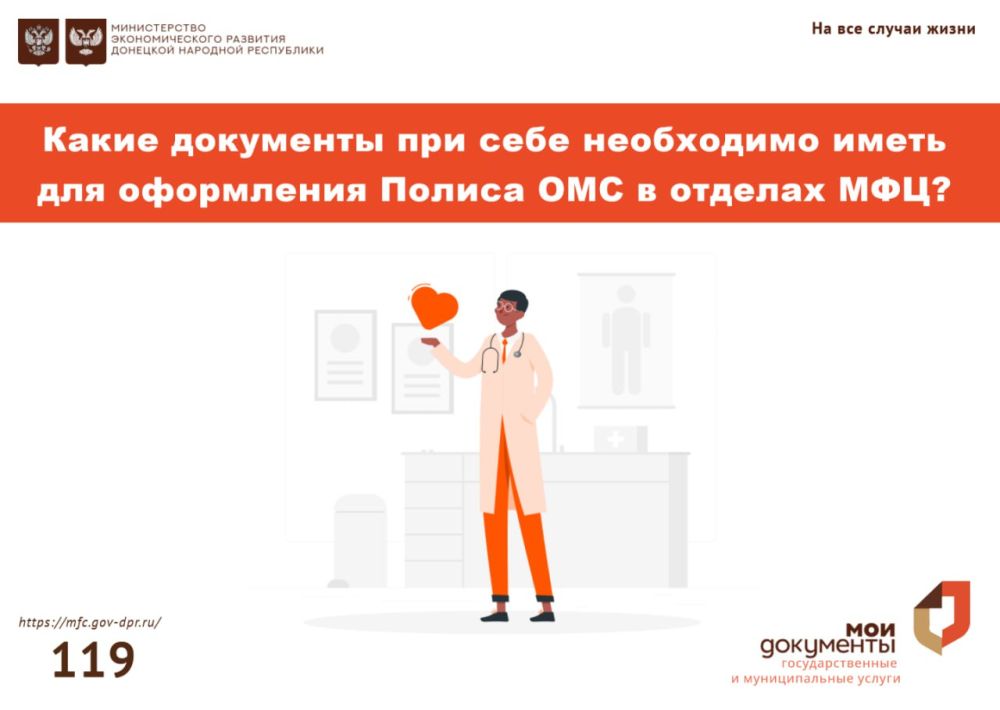 Какие документы при себе необходимо иметь для оформления полиса ОМС в МФЦ? Подробнее — в карточках