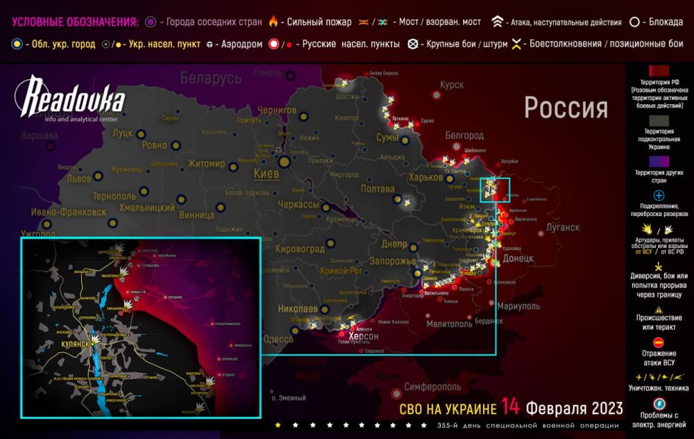 Карта военных действий и ситуация на фронтах вечером 14 февраля