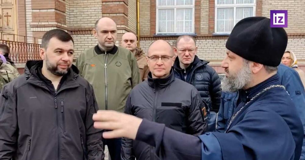 Первый заместитель руководителя администрации президента России Сергей Кириенко и врио главы ДНР Денис Пушилин накануне Пасхи посетили восстановленный после обстрелов ВСУ Свято-Никольский кафедральный