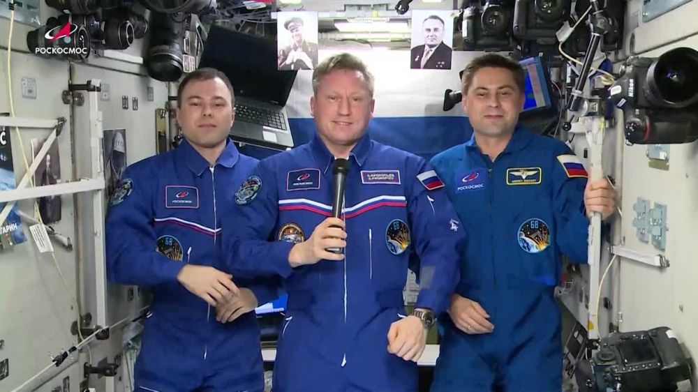Космонавты Роскосмоса Сергей Прокопьев, Дмитрий Петелин и Андрей Федяев поздравили россиян с Днем космонавтики