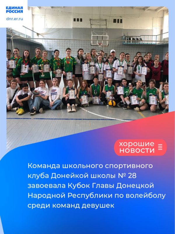Команда школьного спортивного клуба школы № 28 Донецка стала обладателем Кубка Главы Донецкой Народной Республики. Серебряные медали – у команды ШСК средней школы № 22 Харцызска, бронза досталась девушкам из ШСК школы № 8 Енакиево.
