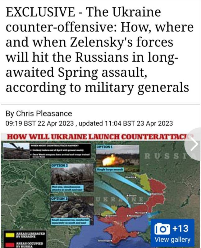 MailOnline - о планах контрнаступа ВСУ: «Боевые планы Украины являются тщательно охраняемым секретом, но Мик Райан, генерал, недавно ушедший в отставку из австралийской армии, сказал MailOnline, что у Киева есть три варианта действий.