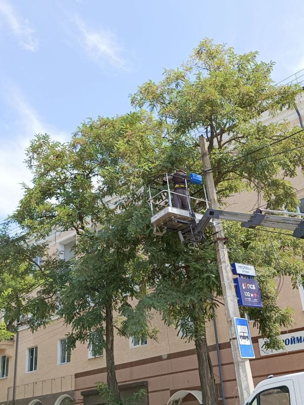 «Мариупольгорсвет» освобождает линии электропередачи от аварийно-опасных ветокВчера сотрудники предприятия по улицам Земнухова и Партизанской, а также переулку Олега Кошевого выполнили пропиловку дере