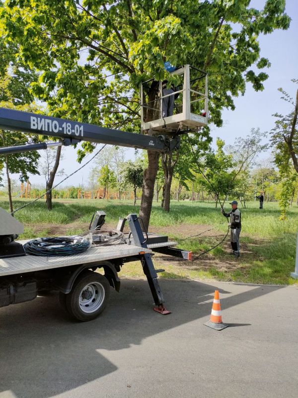 «Мариупольгорсвет» освобождает линии электропередачи от аварийно-опасных ветокВчера сотрудники предприятия по улицам Земнухова и Партизанской, а также переулку Олега Кошевого выполнили пропиловку дере