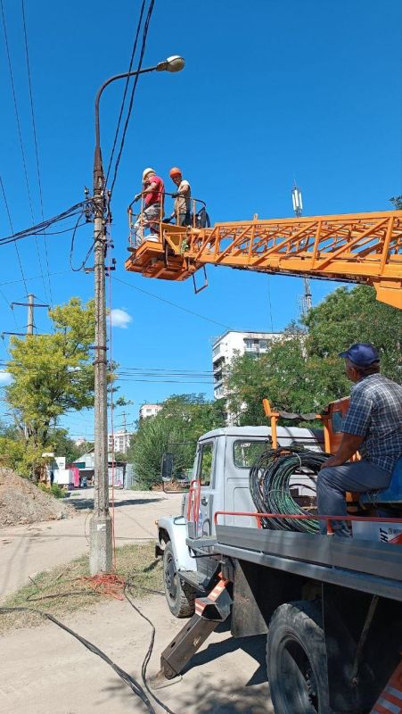 Работники монтажного участка предприятия продолжили демонтаж поврежденных электроопор с вывозом их на полигон площадки «Б». В частности, такие работы проводились на пересечении улиц Бахчиванджи с Краснофлотской и Матросова с Гайдара.