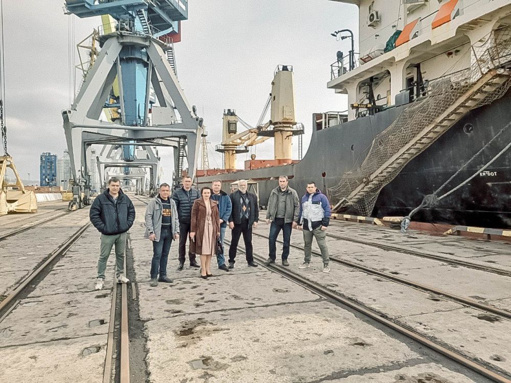 Гостей встречали и.о. директора ГУП ДНР "Администрация морского порта города Мариуполя" Григорий Соболевский и заместитель главы администрации Мариуполя по вопросам промышленности, транспорта и связи Богдан Перепечай.