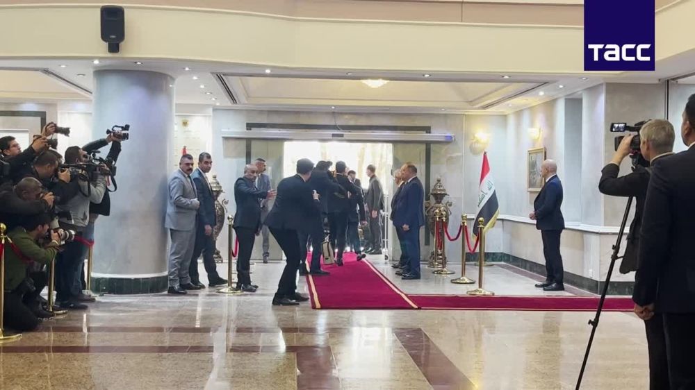 Министр иностранных дел России Сергей Лавров прибыл в МИД Ирака, его встретил иракский коллега Фуад Хусейн