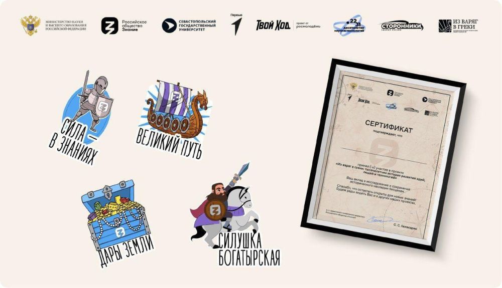 Просветительский проект «Из варяг в греки» создан Севастопольским государственным университетом и Российским обществом «Знание».