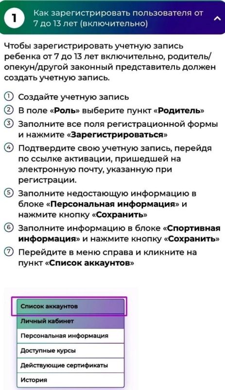 Пошаговая инструкция, как зарегистрировать спортсмена до 13 лет включительно для получения сертификата на знание базовых антидопинговых правил: