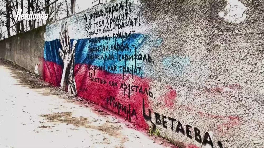 Мы вместе. Роман с позывным «Художник» изобразил граффити в центре Мариуполя. Он изобразил российский флаг и две ладони: