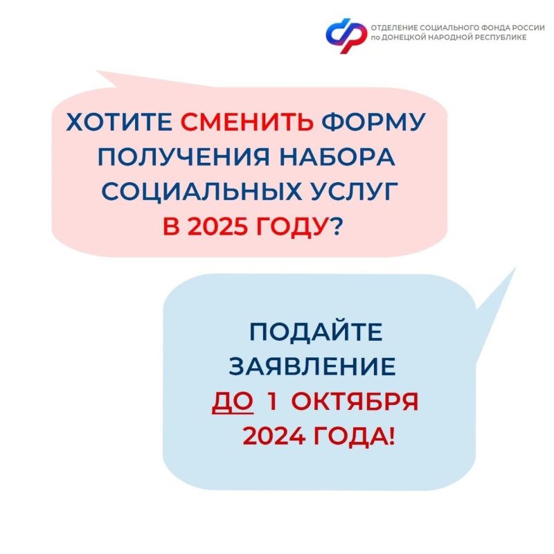 Подавать заявление до 1 октября 2024 года необходимо только, если планируете изменить со следующего года действующий набор услуг (например, сейчас получаете натуральные льготы, а хотите в 2025 году получать деньги, или наоборот).