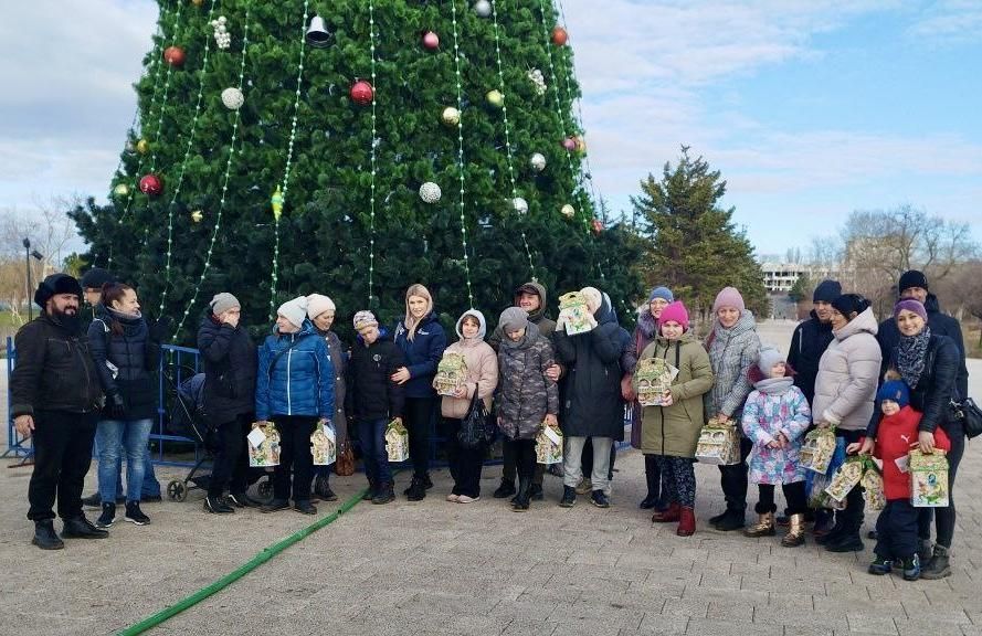 Так, сотрудники учреждения навестили в Мариуполе подопечных АНО «Маженика», помогающей детям с особенностями развития и их семьям, и на городской площади возле новогодней елки вручили им подарки.