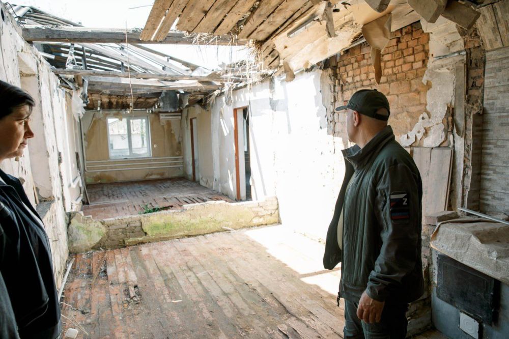 Во время объезда Талаковки с вопросом о возможности восстановить домостроение обратилась одна из владельцев дома по улице Совхозной. Объект получил достаточно серьезные повреждения в ходе боевых действий. Здесь полностью разрушена кровля, повреждены стены, выбиты окна и двери. Дом на два хозяина, но к восстановительным работам еще никто не приступал.