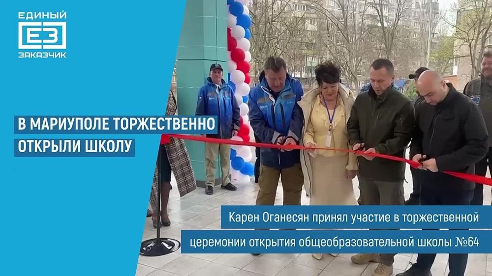 ОТКРЫТИЕ ШКОЛЫ В МАРИУПОЛЕ ПОСЛЕ РЕМОНТАГенеральный директор «Единого заказчика» Карен Оганесян открыл после восстановления школу №64 в МариуполеВ торжественной церемонии открытия общеобразовательной