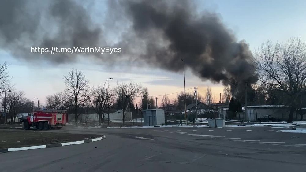 Петровский район Донецка, сотрудники МЧС пытаются потушить пожар на месте дневного прилёта