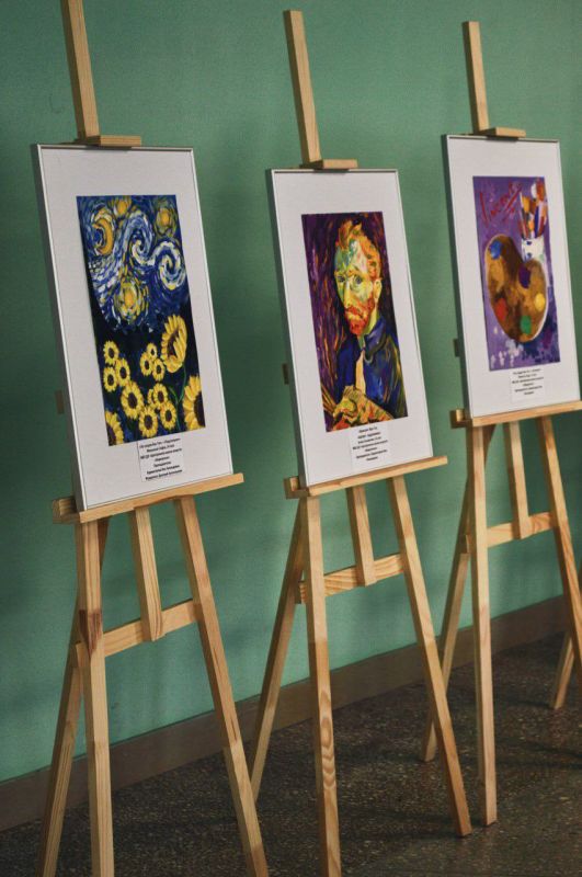 В экспозиции были представлены работы учеников и преподавателей по мотивам картин знаменитого художника, и, конечно же, репродукции всемирно известных шедевров: «Звездная Ночь» и «Подсолнухи».