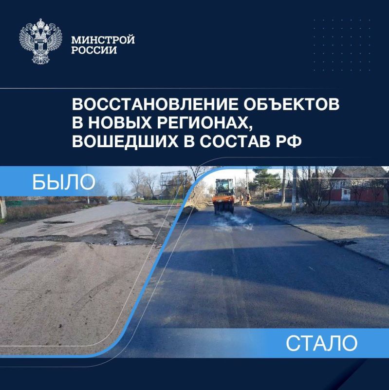 При координации Минстроя России продолжается масштабная работа по восстановлению ДНР, ЛНР, Херсонской и Запорожской областей