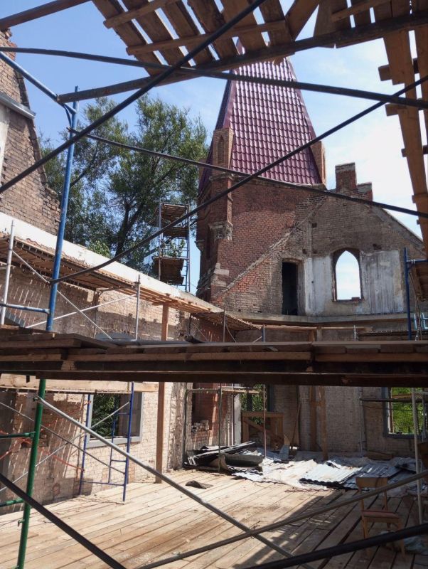 Строители осуществляют демонтажные работы, восстановление конструктива, внутренних помещений, окон и кровли здания, а также окон, дверей, отделки и электрики МОП. Помимо этого, ведется восстановление инженерных коммуникаций — центрального отопления, водоснабжения и водоотведения. В данный момент готовность объекта составляет 25%.