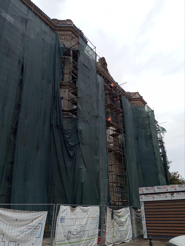 Строители осуществляют восстановление конструктива, кровли, МОП, окон и дверей здания. Также ведется восстановление инженерных сетей: систем водоснабжения, электроснабжения, центрального отопления, водосточной системы. В данный момент готовность объекта составляет 80%.