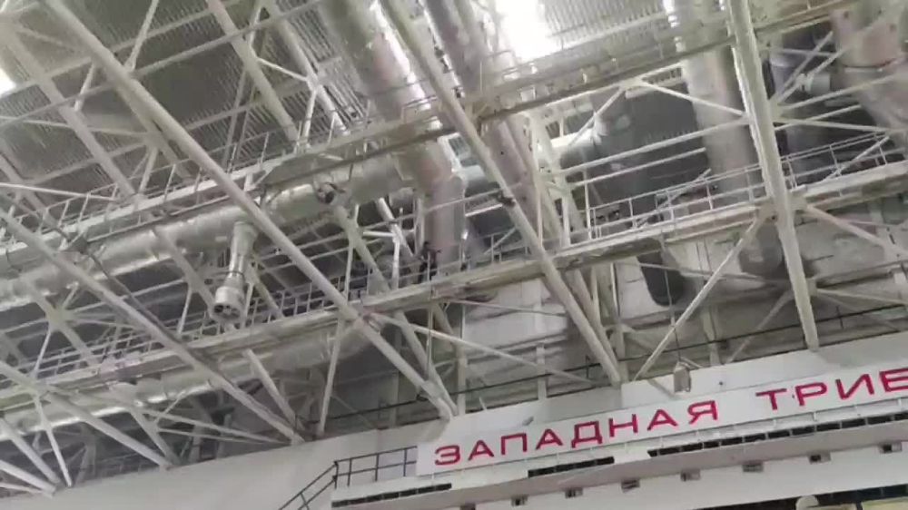 Продолжается работа волонтёров Общества "Царьград" по восстановлению кровли одного из спортивных комплексов Мариуполя