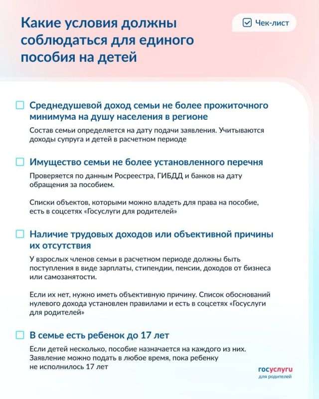 Проверьте, положено ли вам единое пособие на детей В этом чек-листе — основные условия для назначения единого пособия