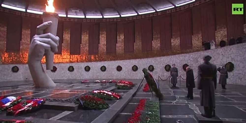 Путин возложил венок к Вечному огню в Пантеоне славы на Мамаевом кургане в Волгограде