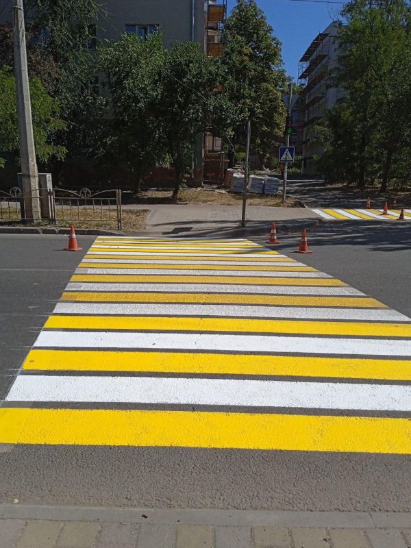 Работники предприятия «Мариупольавтодор» обновили разметку пешеходных переходов Новую разметку для комфортного перехода автодорог горожанами сотрудники муниципального предприятия нанесли вблизи школ №