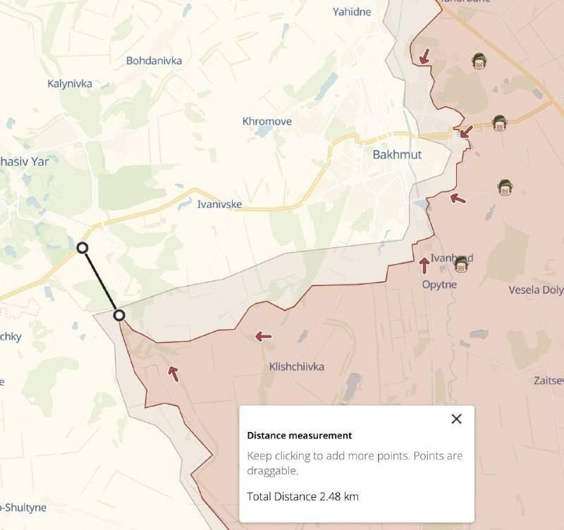 Западнее Клещеевки "вагнеровцы" продвигаются к селам Красное и Ступочки.