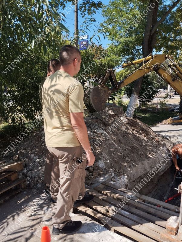 Специалисты ГУП ДНР «РЭК» выполняют работы по восстановлению поврежденного кабеля, для подключения абонентов к сети. Работы ведутся по улице Пашковского, 34.