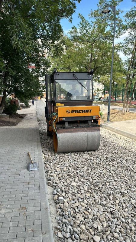 Петербургские специалисты приводят в порядок придомовые территории в Жовтневом районе города Мариуполя. Рабочие выполняют укладку нового асфальта, тротуарной плитки, устанавливают столбы для уличного освещения, благоустраивают зоны отдыха для детей и взрослых.