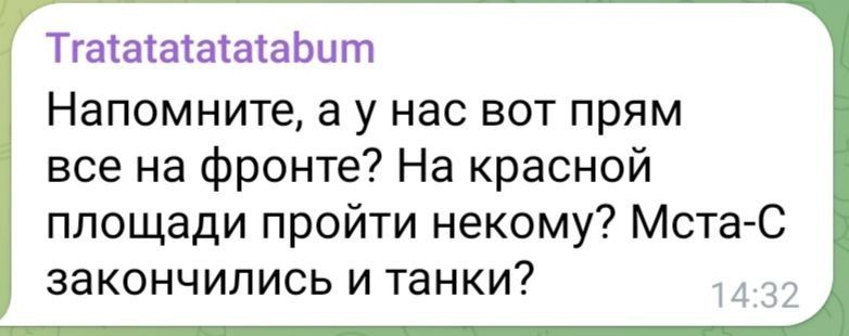 А любая попытка устроить Парад Победы, когда нам до нашей победы еще очень далеко, будет выглядеть как насмешка над нашими павшими и тему, кто в оккупации ждет русских солдат.