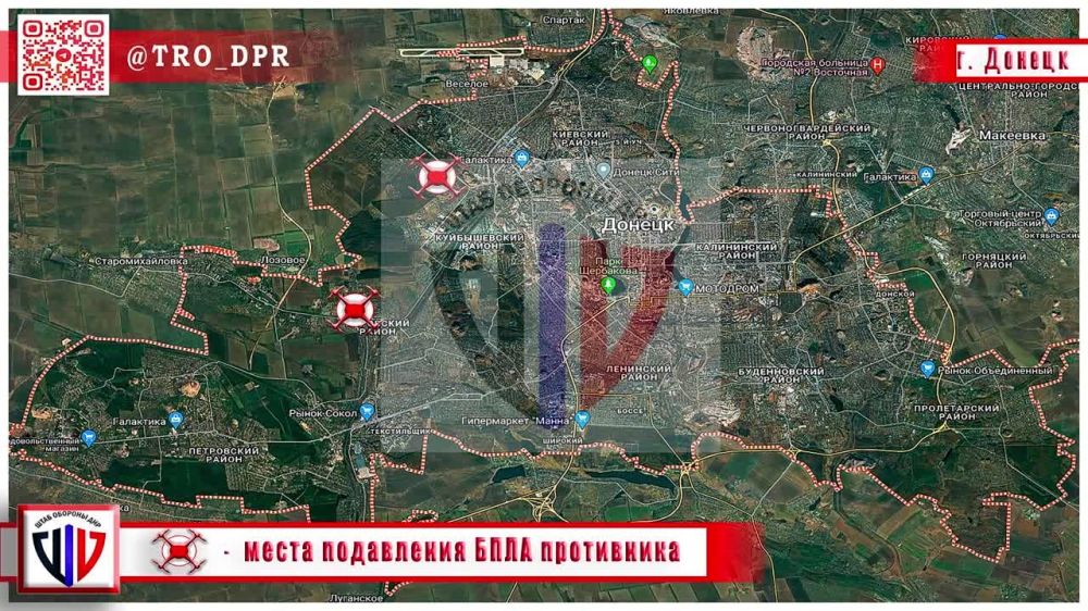 Штаб обороны ДНР информирует:За прошедшую неделю системой защиты воздушного пространства и радиоэлектронной борьбы "Купол Донбасса" над Донецком, Макеевкой и Ясиноватой сорвано 97 террористи