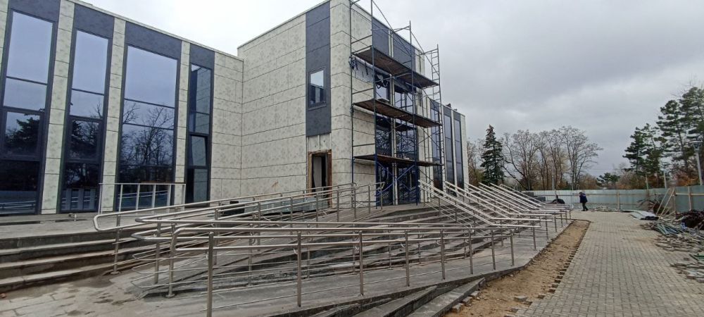 Мастера восстановили панно здания, сейчас рабочие заняты облицовкой фасада, ремонтом кровли и отделкой внутренних помещений. Специалисты прокладывают инженерные сети. Работа не прекращается ни на минуту.
