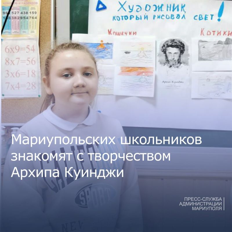 Для учеников 6-А класса СШ № 34 специалисты библиотеки-филиала им. А.С. Пушкина провели познавательно-игровую программу «А. Куинджи и Мариуполь». «Дети с интересом узнали, как сын простого сапожника, переживший нужду, стал одним из величайшим художников XIX века и самой яркой звездой общества передвижников», - делится заведующая библиотекой Наталья Селецкая.