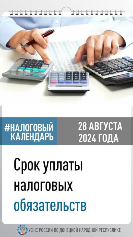 УФНС России по ДНР напоминает налогоплательщикам о предельном сроке уплаты обязательств в августе