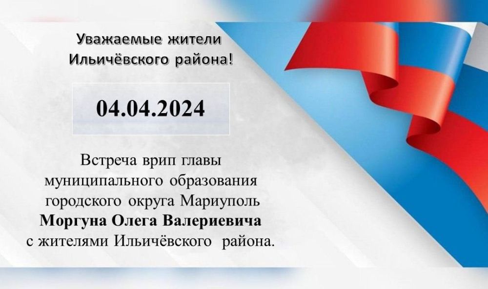 04.04.2024 г. состоится встреча врип главы муниципального образования городского округа Мариуполь Моргуна Олега Валериевича с жителями.