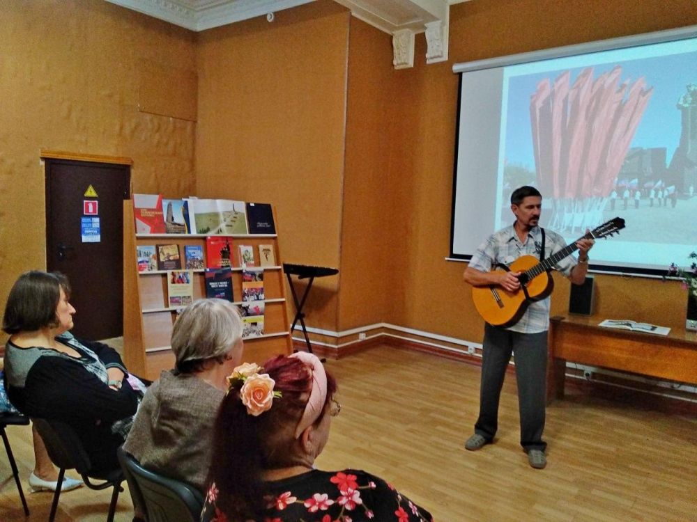 На мероприятии прозвучали записи песен военных лет, стихи советских и современных поэтов, авторские произведения донецкого поэта, автора-исполнителя Юрия Черепахина.