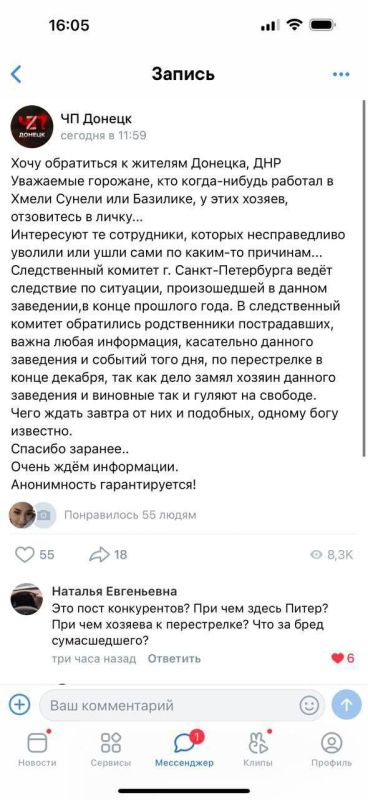 Но владельцев группы это не интересует, если не уплачена дань в 3 тысячи Как лить клевету и грязь так первыми, а почему тогда не выставляли как Хмели-Сунели большими партиями организовывал сбор гуманитарки для пострадавших в Мариуполе? Выдавалась детская помощь и по месту? Как устраивали детские благотворительные праздники? Это ведь не интересно размещать, зато выдумки обиженной женщины готовы удерживать, ведь на этом больше хайпв можно собрать или снова же те 3000