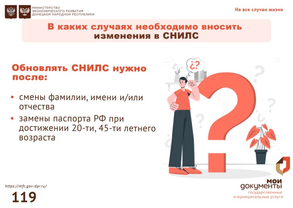 В каких случаях необходимо вносить изменения в СНИЛС? Подробнее — в карточках